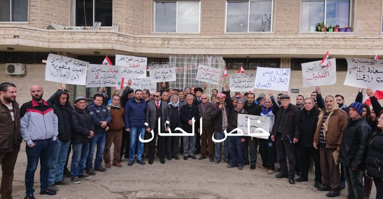 اعتصام أصحاب حقوق المياه في نبع رأس العين والمزارعين أمام قصر العدل في بعلبك