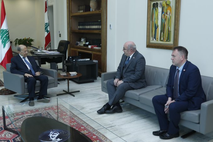 الى ذلك، شهد قصر بعبدا سلسلة لقاءات تناولت مواضيع ديبلوماسية وسياسية وانمائية. وفي هذا الاطار، استقبل الرئيس عون رئيس البعثة الديبلوماسية البريطانية في بيروت الدكتور مارتن لونغدن والمستشار السياسي في السفارة غافن تنيش، وتم خلال اللقاء عرض العلاقات اللبنانية – البريطانية، حيث شكر رئيس الجمهورية الدكتور لونغدن على الجهود التي بذلها خلال ترؤسه البعثة البريطانية في لبنان وتمنى له، لمناسبة نهاية عمله في بيروت التوفيق في مهامه الجديدة.