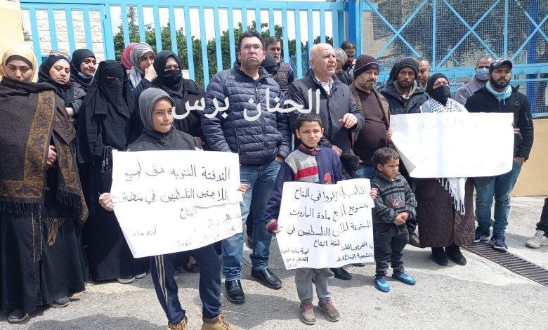 نظمت لجنة المتابعة للمهجرين الفلسطنيين من سوريا في البقاع الاوسط والغربي اعتصاما امام مكتب الانروا في البقاع تعلبايا يمشاركة حشدا من المهجرين.