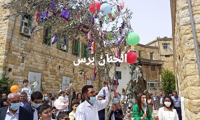 بعد القداس، طاف المؤمنون خلف الأب فيليب العُقلة في باحة كنيسة القديس جاورجيوس، وحمل الأطفال الشموع الملونة وأغصان الزيتون، المزدانة بالحلوى والبالونات الملونة، وساروا في ثلاث دورات حول الكنيسة، على وقع قرع الأجراس تهليلاً بالمسيح الآتي بفرحٍ كبيرإلى قلوب الأطفال.